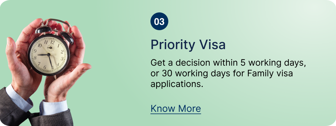 Disclaimer: Please note that the service(s) is/are currently offered for select locations/countries. Availability and the service charges for the above-mentioned service(s) may vary depending upon the country/location where it is procured. The choice of location for availing the service may also vary. The grant or refusal of the visa is at the sole discretion of UK Visas & Immigration and availing of the above added value service will not affect the processing time or decision of your visa as VFS Global is neither involved in the process nor is VFS Global liable or responsible in any manner whatsoever for the grant or rejection of the visa application of any customer by UK Visas & Immigration. For further information on the same, kindly refer to the terms and conditions on the VFS Global website. The above-mentioned services are optional and will be charged in addition to the visa application fee. The customer hereby accepts and confirms that they, prior to availing the above-mentioned service(s), have read, understood and agreed to be bound by, without limitation or qualification, all of the terms and conditions associated with the service(s).
